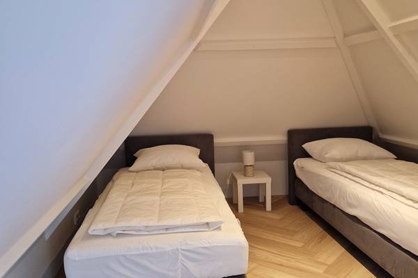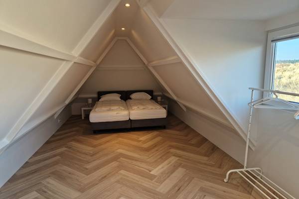 Binnen vind je een moderne keuken en een badkamer met inloopdouche, wastafel en was-droogcombinatie. Een trap leidt naar boven, met twee knusse slaapkamers met comfortabele boxspringbedden.
