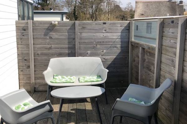 Chalet Sinne is gelegen op de mooi camping Roosdunen in Ballum. de chalet heeft een woonkamer met open keuken, twee slaapkamers, badkamer met douche en toilet. Omsloten terras met zitje
